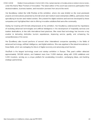 6/19/25, 9:28 AM Shaikha Al Nowais participates in VivaTech 2025 in Paris, highlights importance of localizing advanced solutions to develop tourism…