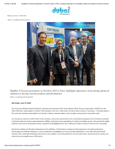6/19/25, 9:28 AM Shaikha Al Nowais participates in VivaTech 2025 in Paris, highlights importance of localizing advanced solutions to develop tourism…