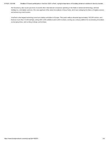 6/19/25, 9:28 AM Shaikha Al Nowais participates in VivaTech 2025 in Paris, highlights importance of localizing advanced solutions to develop tourism…