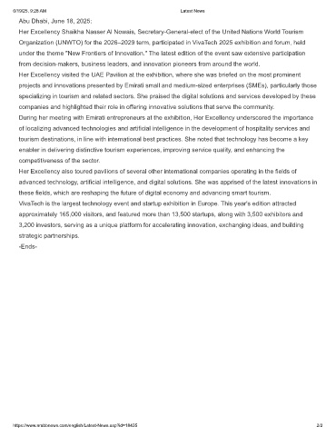 Organization (UNWTO) for the 2026–2029 term, participated in VivaTech 2025 exhibition and forum, held