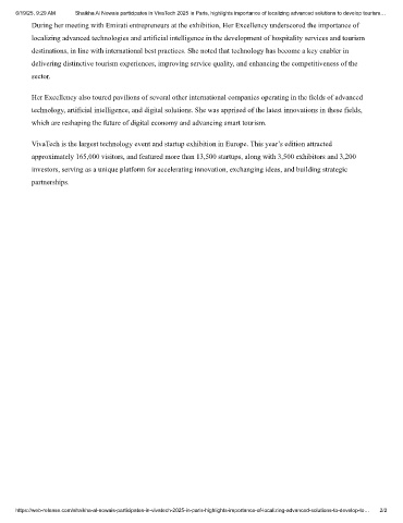 6/19/25, 9:29 AM Shaikha Al Nowais participates in VivaTech 2025 in Paris, highlights importance of localizing advanced solutions to develop tourism…