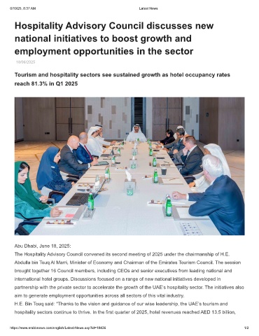 The Hospitality Advisory Council convened its second meeting of 2025 under the chairmanship of H.E.