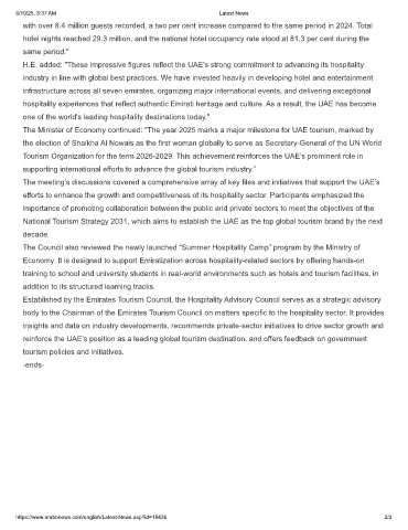 H.E. added: "These impressive figures reflect the UAE’s strong commitment to advancing its hospitality