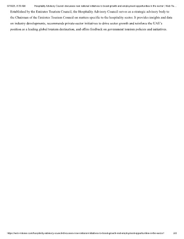 the Chairman of the Emirates Tourism Council on matters specific to the hospitality sector. It provides insights and data