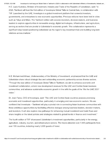 6/19/25, 9:25 AM Investopia to host inaugural Global Talks in Tashkent in 2026 in collaboration with Uzbekistan’s Ministry of Investments, Industry an…