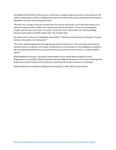 He added that the ‘Summer Hospitality Camp 2025’ “answers a long-standing challenge of the gap