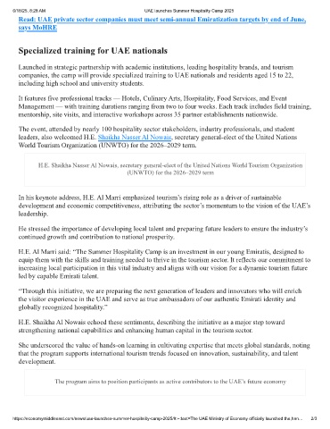 6/18/25, 8:28 AM UAE launches Summer Hospitality Camp 2025