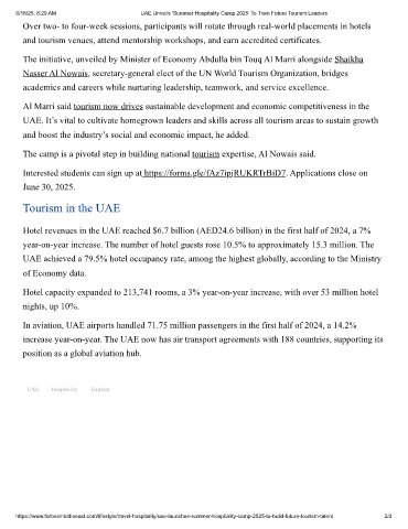 6/18/25, 8:29 AM UAE Unveils ‘Summer Hospitality Camp 2025’ To Train Future Tourism Leaders