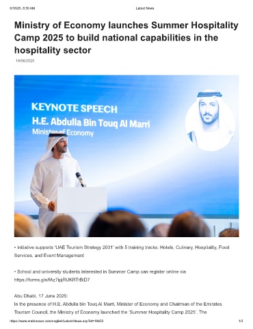 Tourism Council, the Ministry of Economy launched the ‘Summer Hospitality Camp 2025’. The