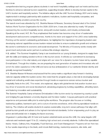 The Summer Hospitality Camp enhances Emiratization in the tourism sector by empowering country’s youth