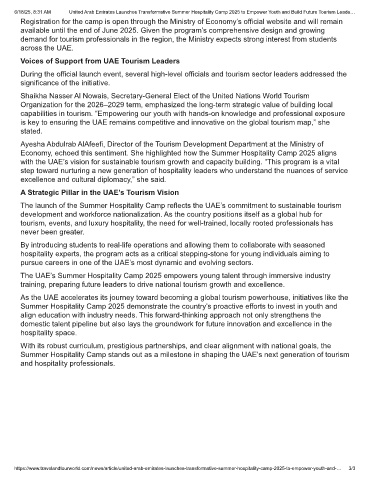 6/18/25, 8:31 AM United Arab Emirates Launches Transformative Summer Hospitality Camp 2025 to Empower Youth and Build Future Tourism Leade…
