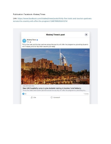 Publication: Facebook- Khaleej Times Link: https://www.facebook.com/khaleejtimes/posts/thirty-five-hotel-and-tourism-partners- across-the-country-will-offer-the-program/1248788820241274/