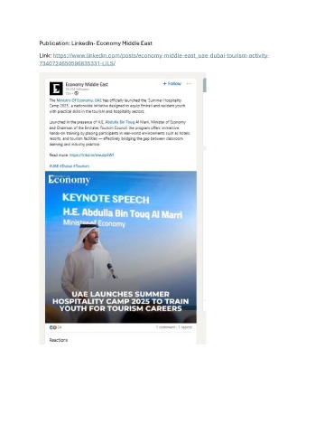 Publication: LinkedIn- Economy Middle East Link: https://www.linkedin.com/posts/economy-middle-east_uae-dubai-tourism-activity- 7340724650596835331-LJLS/