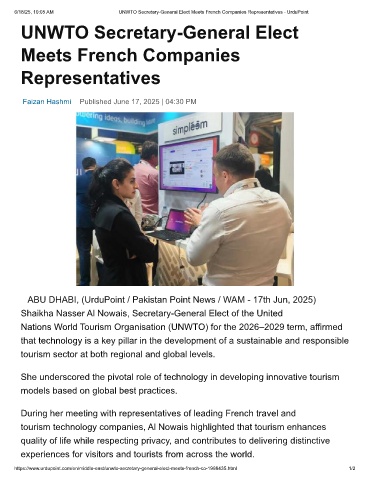 6/18/25, 10:05 AM UNWTO Secretary-General Elect Meets French Companies Representatives - UrduPoint
