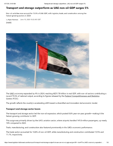 6/17/25, 8:49 AM Transport and storage outperform, UAE non-oil GDP surges 5%