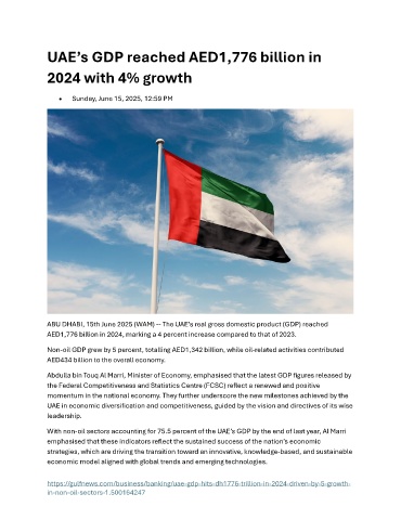 ABU DHABI, 15th June 2025 (WAM) -- The UAE’s real gross domestic product (GDP) reached