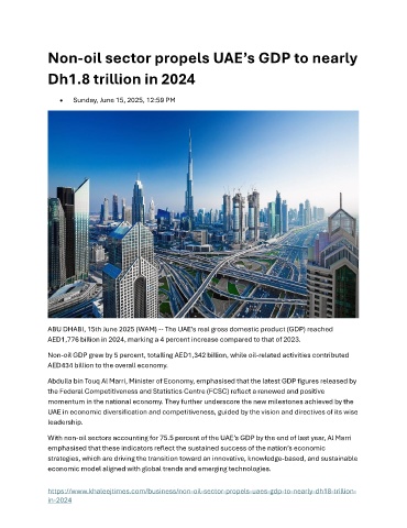 ABU DHABI, 15th June 2025 (WAM) -- The UAE’s real gross domestic product (GDP) reached