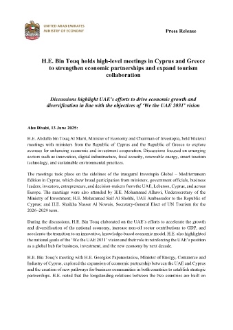 H.E. Bin Touq holds high-level meetings in Cyprus and Greece