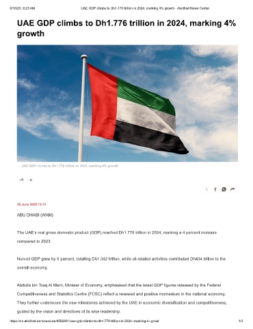 6/16/25, 9:23 AM UAE GDP climbs to Dh1.776 trillion in 2024, marking 4% growth - Aletihad News Center