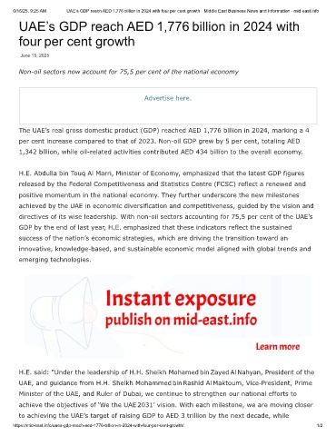 6/16/25, 9:25 AM UAE’s GDP reach AED 1,776 billion in 2024 with four per cent growth - Middle East Business News and Information - mid-east.info