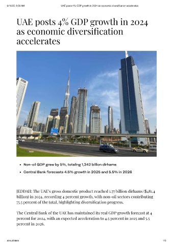 6/16/25, 9:30 AM UAE posts 4% GDP growth in 2024 as economic diversification accelerates
