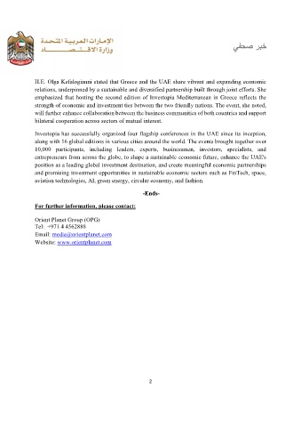 H.E. Olga Kefalogianni stated that Greece and the UAE share vibrant and expanding economic