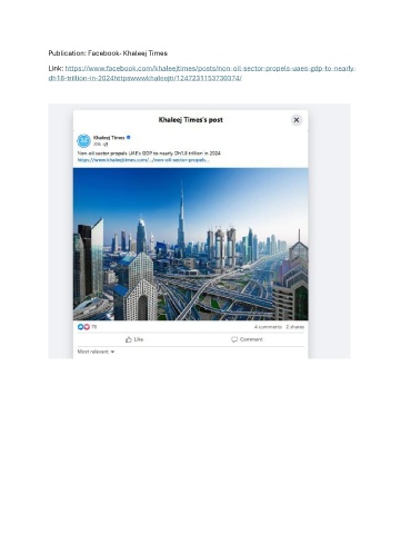 Publication: Facebook- Khaleej Times Link: https://www.facebook.com/khaleejtimes/posts/non-oil-sector-propels-uaes-gdp-to-nearly- dh18-trillion-in-2024httpswwwkhaleejti/1247231153730374/