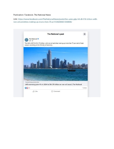 Publication: Facebook- The National News Link: https://www.facebook.com/TheNationalNews/posts/the-uaes-gdp-hit-dh178-trillion-with- non-oil-activities-making-up-more-than-75-p/1139298601559896/