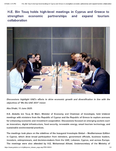 6/16/25, 5:15 PM H.E. Bin Touq holds high-level meetings in Cyprus and Greece to strengthen economic partnerships and expand tourism collaboration