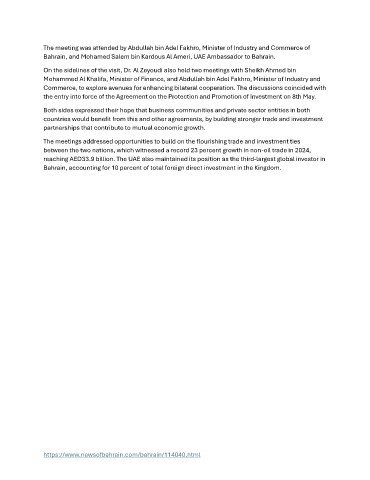 The meeting was attended by Abdullah bin Adel Fakhro, Minister of Industry and Commerce of