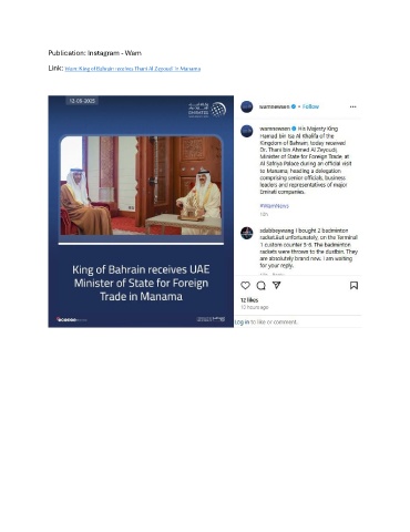 Publication: Instagram - Wam Link: Wam: King of Bahrain receives Thani Al Zeyoudi in Manama