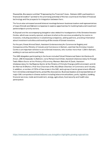 of major Emirati and Bahraini companies to explore opportunities for building trade and investment