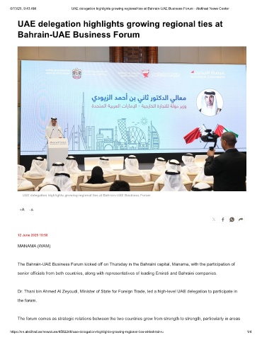 6/13/25, 9:43 AM UAE delegation highlights growing regional ties at Bahrain-UAE Business Forum - Aletihad News Center