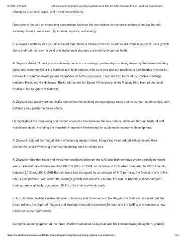 6/13/25, 9:43 AM UAE delegation highlights growing regional ties at Bahrain-UAE Business Forum - Aletihad News Center