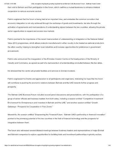 6/13/25, 9:43 AM UAE delegation highlights growing regional ties at Bahrain-UAE Business Forum - Aletihad News Center