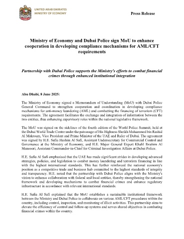between the Ministry and Dubai Police to collaborate on various AML/CFT procedures within the