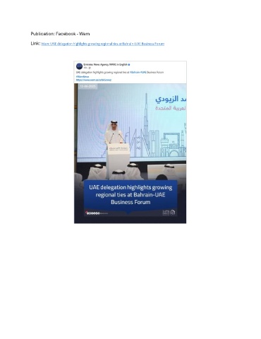 Publication: Facebook - Wam Link: Wam: UAE delegation highlights growing regional ties at Bahrain-UAE Business Forum