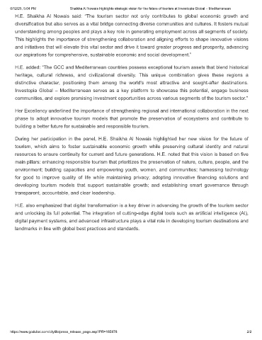 6/12/25, 5:04 PM Shaikha Al Nowais highlights strategic vision for the future of tourism at Investopia Global – Mediterranean