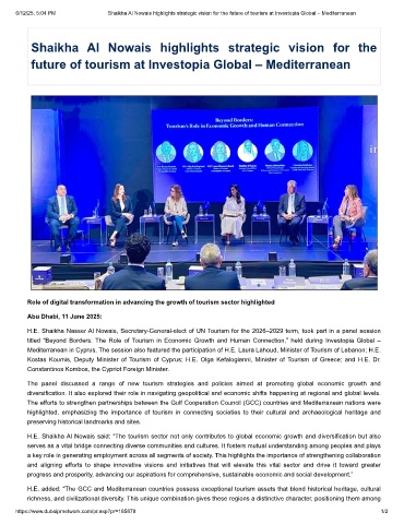 6/12/25, 5:04 PM Shaikha Al Nowais highlights strategic vision for the future of tourism at Investopia Global – Mediterranean