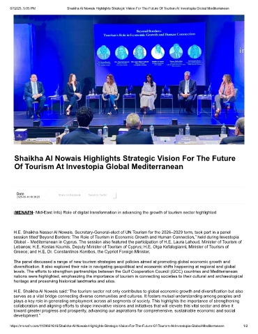 6/12/25, 5:05 PM Shaikha Al Nowais Highlights Strategic Vision For The Future Of Tourism At Investopia Global Mediterranean