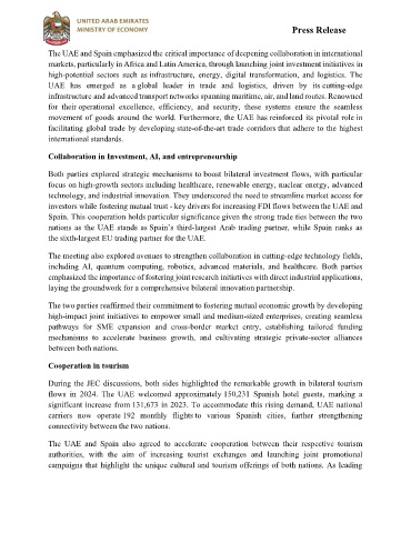 The UAE and Spain emphasized the critical importance of deepening collaboration in international