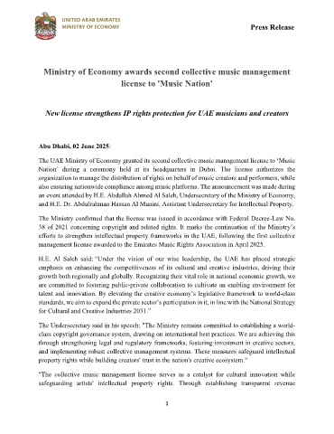 The UAE Ministry of Economy granted its second collective music management license to ‘Music