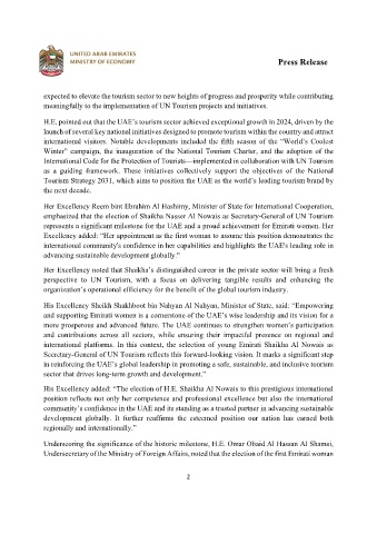 emphasized that the election of Shaikha Nasser Al Nowais as Secretary-General of UN Tourism