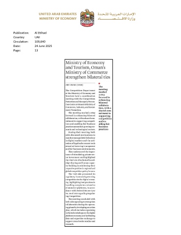 Publication: Al Etihad Country: UAE Circulation: 109,640 Date: 24 June 2025 Page: 13