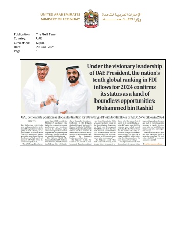 Publication: The Gulf Time Country: UAE Circulation: 60,000 Date: 20 June 2025 Page: 1