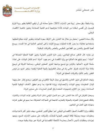 دادﺘﻤا ﻰﻠﻋ تﺎﻨﺎﯿﺒﻟا لﻤﺎﻛﺘ مﻋدﻟ "كوﻨدأ" دوﻬﺠ مﻋد ﻲﻓ دﺎﺼﺘﻗﻻا ةرازو ﻊﻤ ةرﻛذﻤﻟا ﻩذﻫ ﻊﯿﻗوﺘ مﻬﺴﯿ" :"كوﻨدأ"