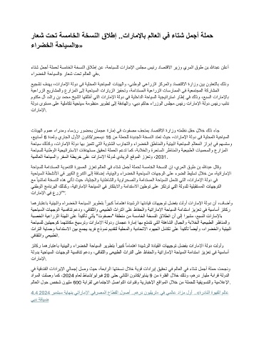 ءاتش لمجأ ةلمحل ةسماخلا ةخسنلا قﻼطإ نع ،ةحايسلل تارامﻹا سلجم سيئر داصتقﻻا ريزو يرملا قوط نب ﷲدبع نلعأ