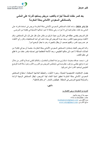 ﻰﻠﻋ ﻪﺗﺭﺪﻗ ﺓﺩﺎﻌﺘﺳﺍ ﻲﻓ ﺾﻳﺮﻣ ﺔﻣﺮﻜﻤﻟﺍ ﺔﻜﻤﺑ ﻲﻧﺎﻤﻟﻷﺍ ﻱﺩﻮﻌﺴﻟﺍ ﻰﻔﺸﺘﺴﻤﻟﺍ ءﺎﺒﻁﺃ ﺪﻋﺎﺳ - 2024 ﺮﻳﺎﻨﻳ 24
