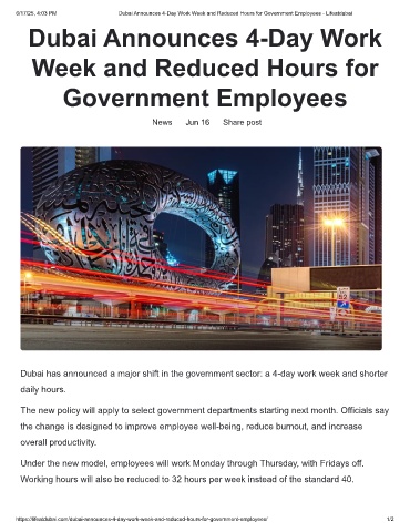 https://lifeatdubai.com/dubai-announces-4-day-work-week-and-reduced-hours-for-government-employees/ 1/2