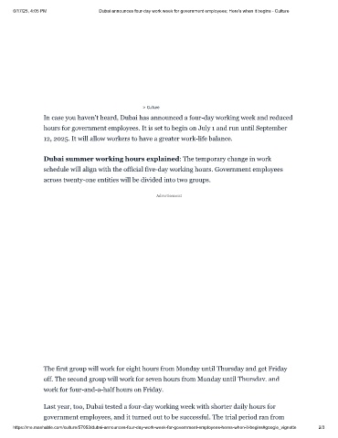 6/17/25, 4:05 PM Dubai announces four-day work week for government employees; Here's when it begins - Culture